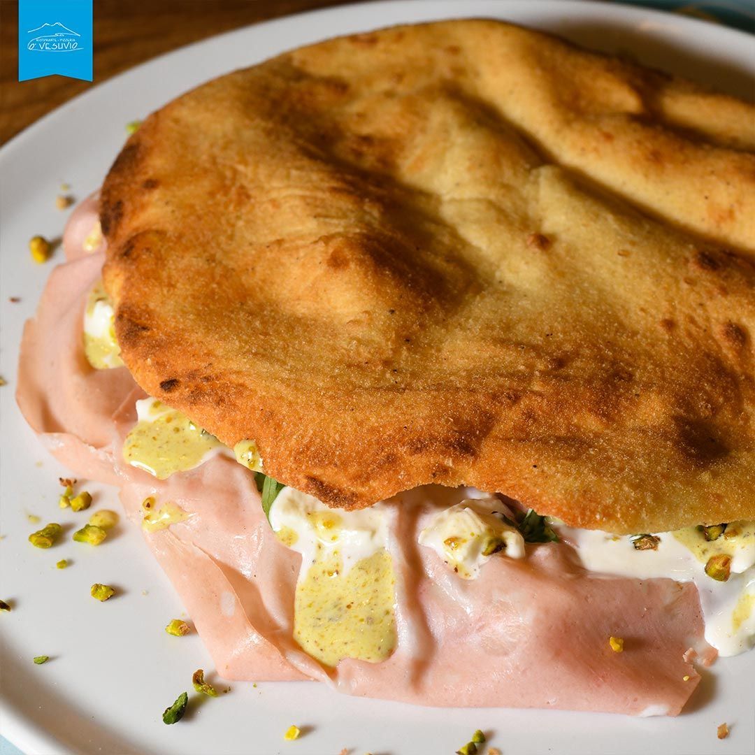 ripieno di mozzarella di bufala, all'uscita: mortadella presidio solo food, stracciata di bufala